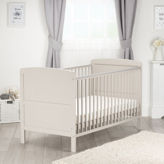 CuddleCo Clara 2 Piece Nursery Furniture Set (Cot Bed & Dresser) - White/Ash