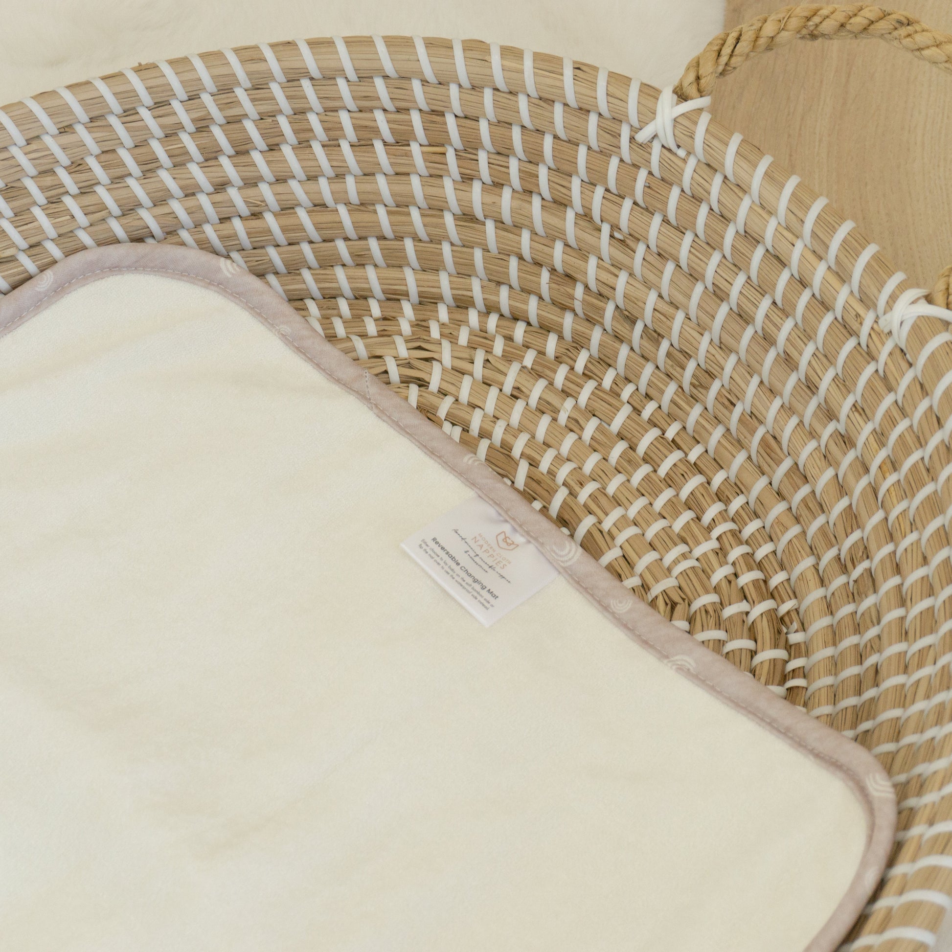 Inside you’ll find our ultra-soft bamboo lining which means your baby isn't lay on a cold hard surface during nappy changes, and on the reverse is our waterproof side which is wipeable - great for weaning on the go!