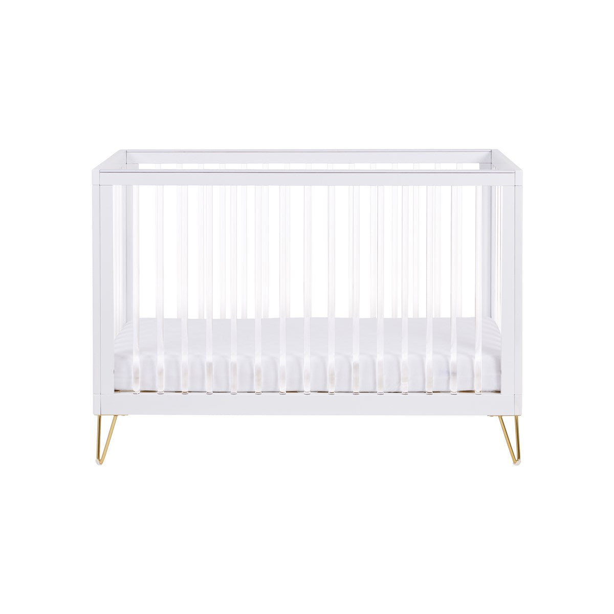 The Babymore Kimi Convertible Cot Bed is a stunning centerpiece for your nursery, blending contemporary design with retro-inspired elegance. Featuring modern acrylic spindles, Scandi-style hairpin legs, and a natural wooden frame, the Kimi cot bed is as functional as it is stylish. Its 100% recyclable, non-toxic acrylic spindles provide a light, open feel with full visibility of your baby from any angle.