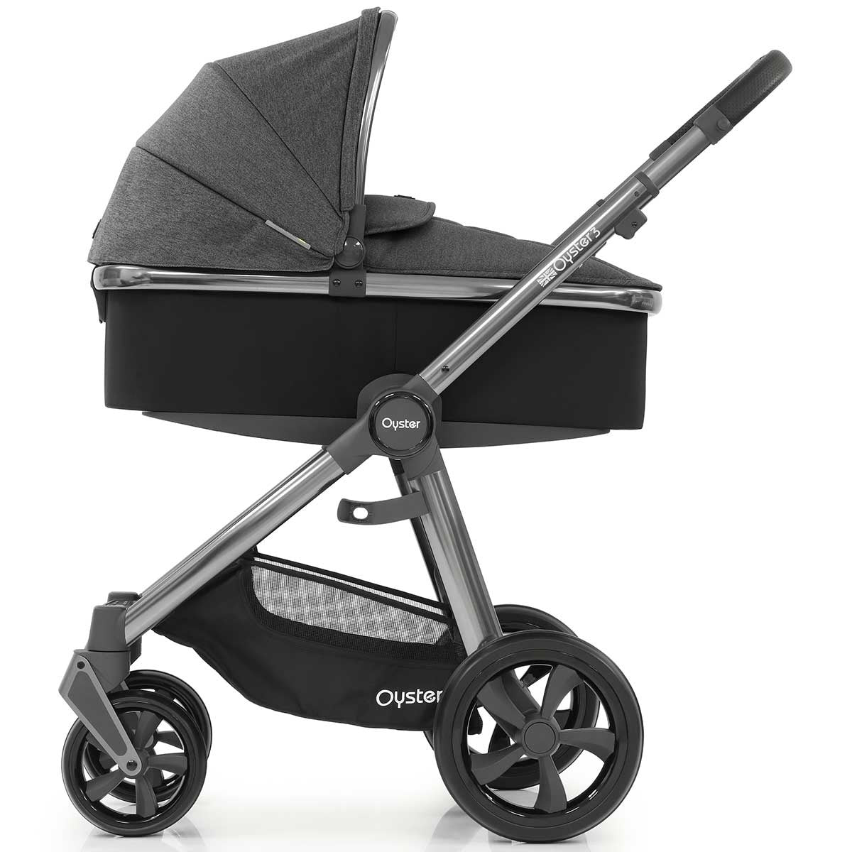 This beautiful combination of versatility, adaptability and luxury includes both the spacious Oyster 3 stroller with its exceptional compact fold and the matching carrycot for use from birth.
