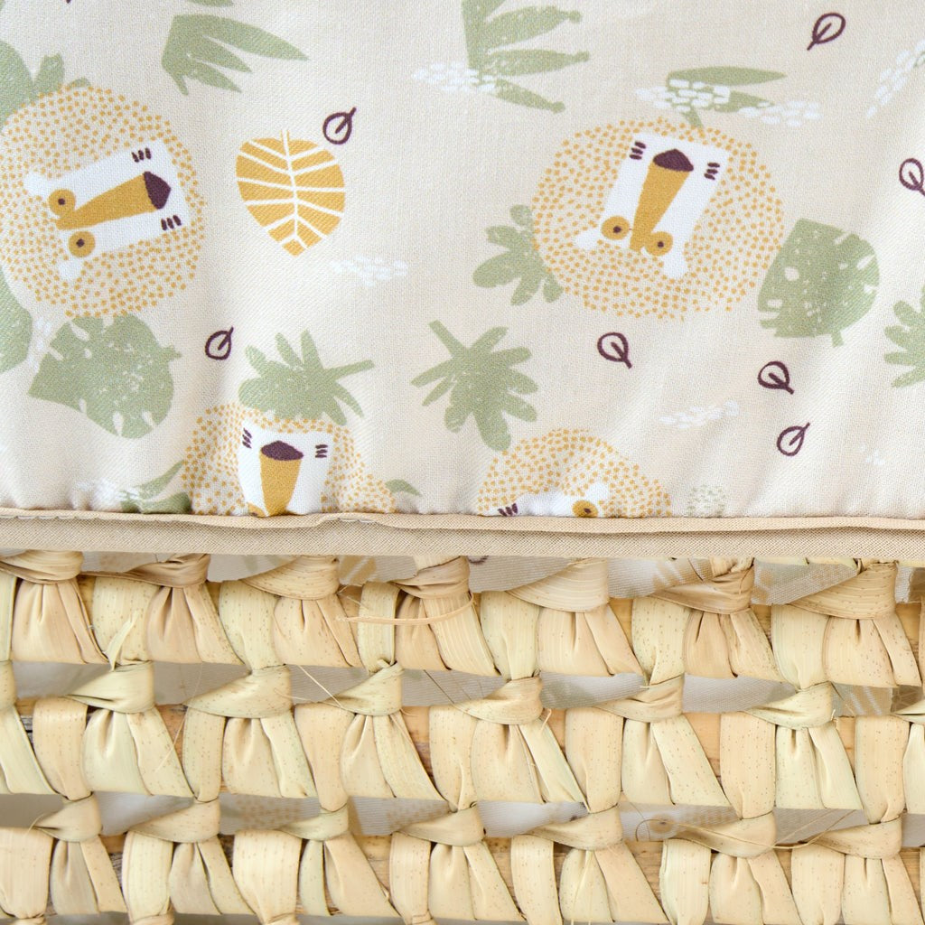 Creating a wild nursery? Introducing this season's hottest Moses basket dressed in an on-trend Safari fabric in super cosy hues of cream and green.