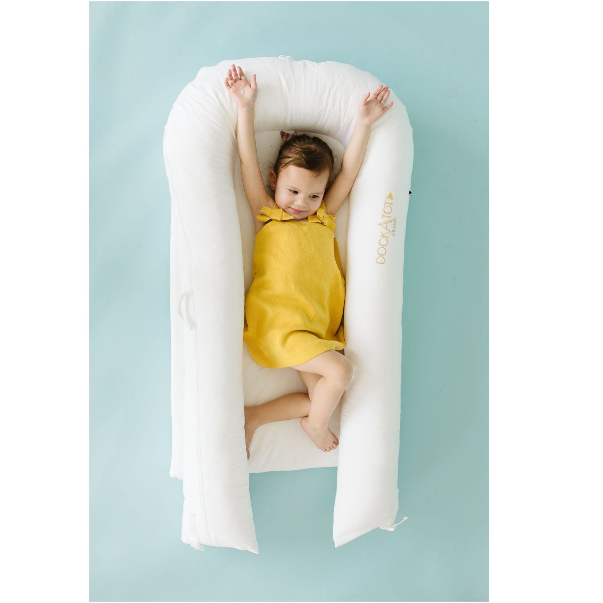 The DockATot® Grand dock is our stage 2 lounging dock, 50% longer and wider, for tots age 9 months to 36+ months. The Grand size is an essential go-to spot for tots lounging around the house or when traveling. The built-in, air permeable side on the Grand dock gives little ones a familiar sense of security. For older tots, the Grand dock will help ease a child into their new setting when they are otherwise ready to sleep in a toddler bed. It provides a comforting and safe environment. Made in Europe. Features include air permeability and Oeko-Tex Standard 100 Class 1 certification (testing for harmful substances). Formerly known as Sleepyhead of Sweden.