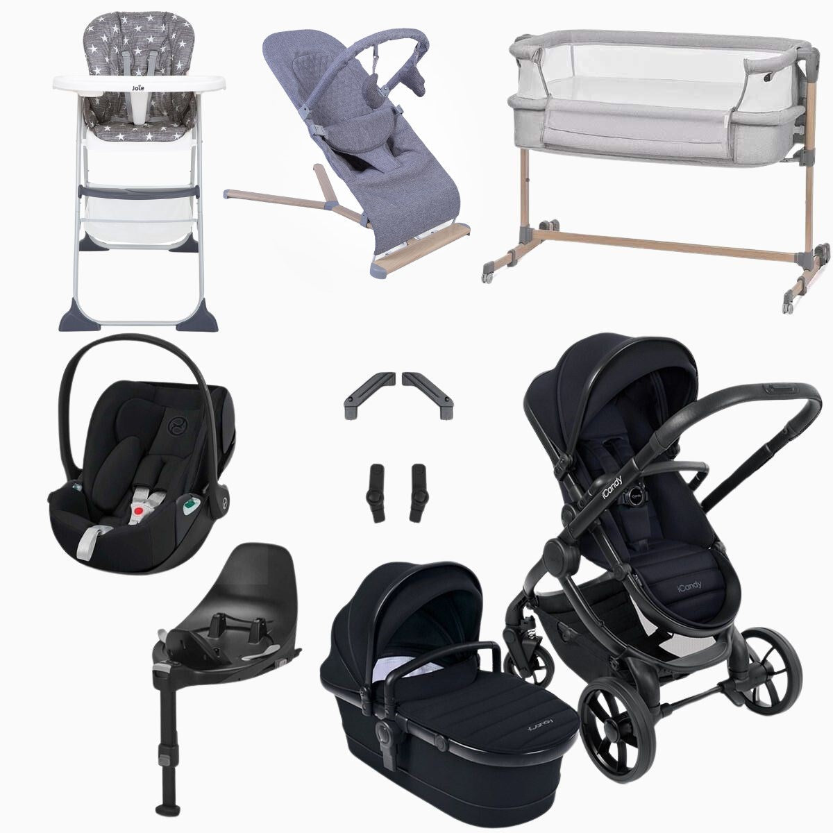 iCandy Peach 7 Premium iSize Travel System & Starter Nursery Bundle including Isofix Base, Black Edition