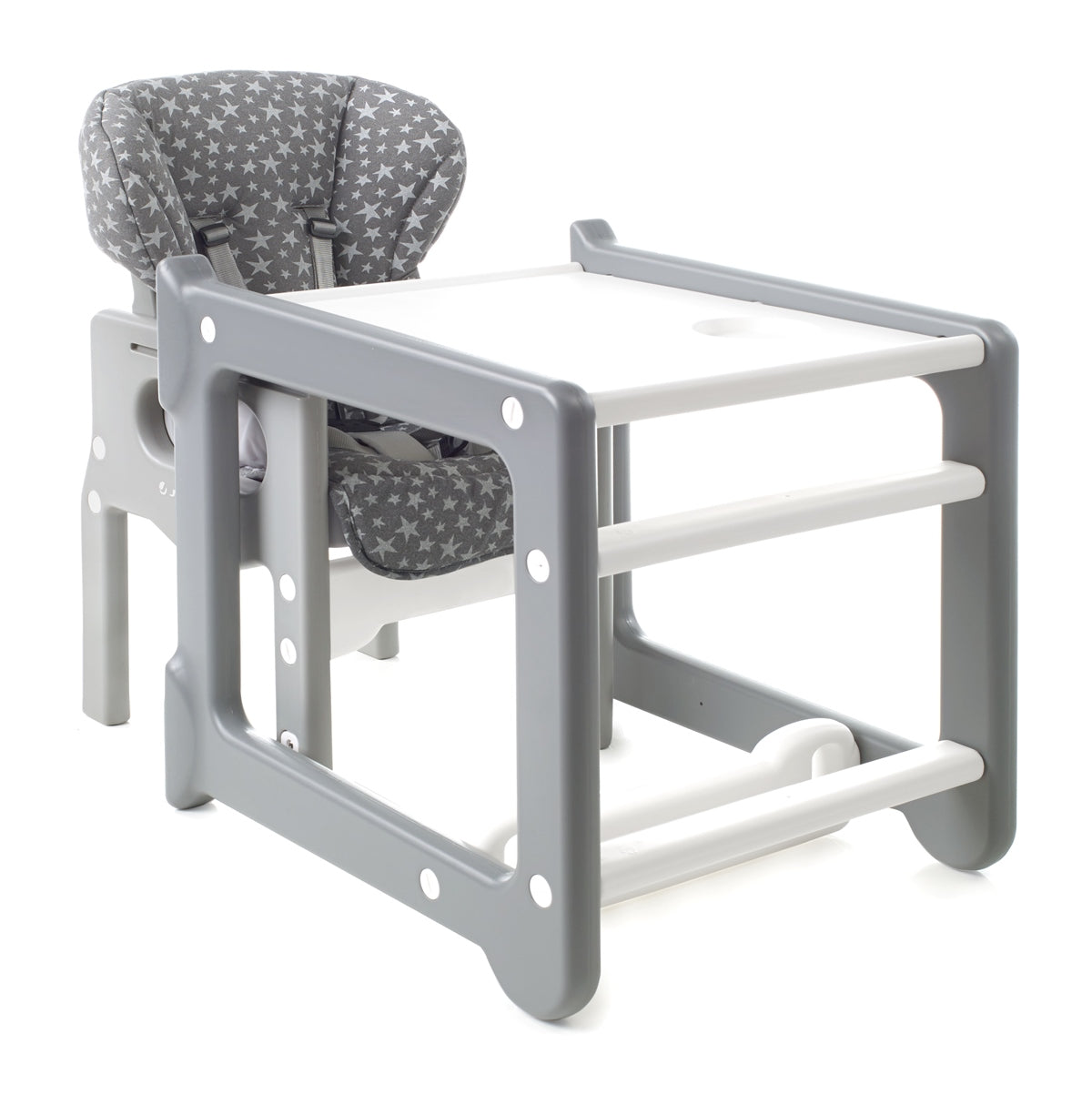 - Converts from highchair to table and chair.