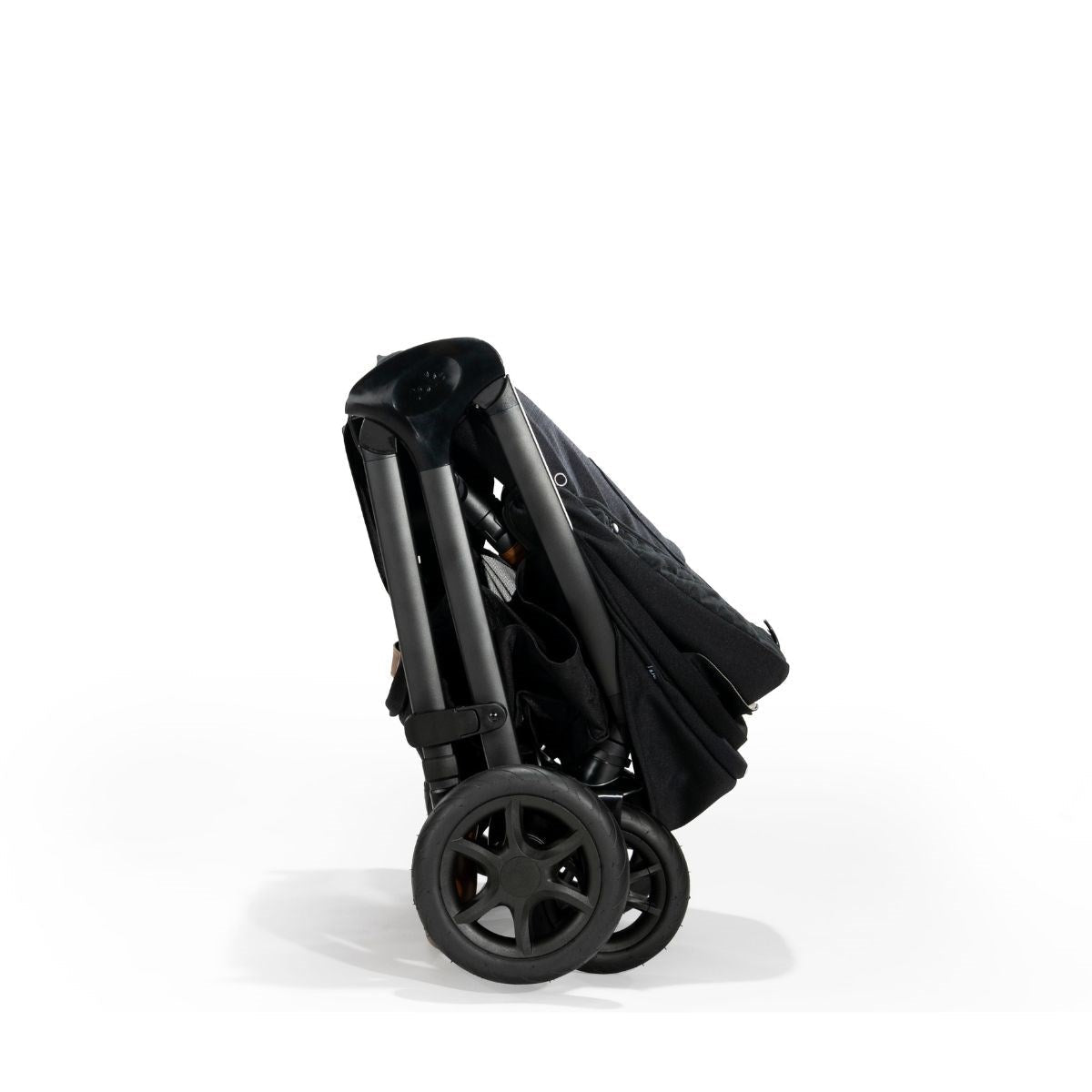 - Compact Fold: Folds with the seat attached, whether forward or rearward-facing, and stands ready for storage with a quick tug.