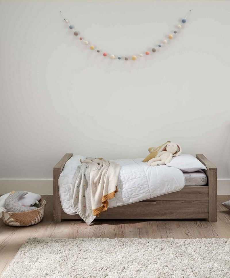 - Handy hanging rail at the end of the cot bed, and tuck away baby's essentials in the spacious under-bed storage drawer.