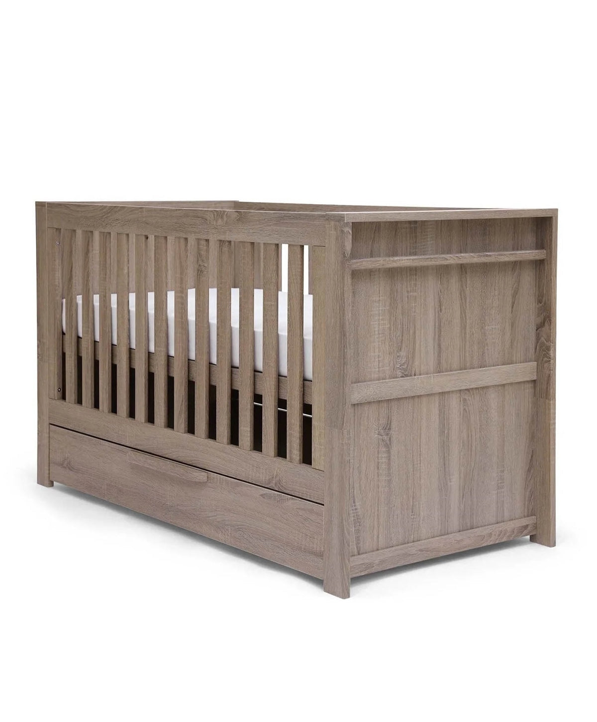 Create a stylish nursery whilst saving on space with this convertible cot/day/toddler bed, complete with added storage space and available in a modern finish.