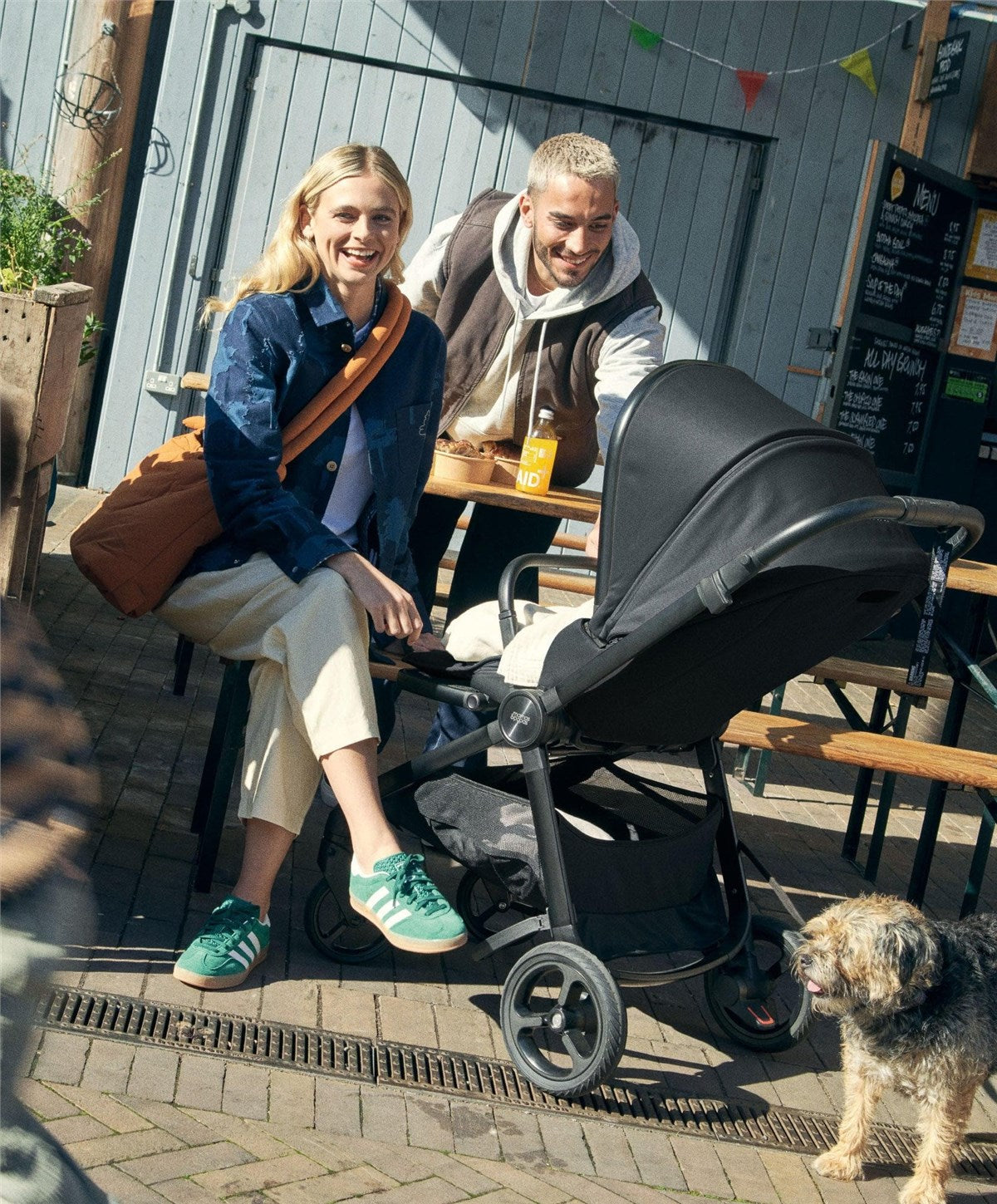 The Vardo Pushchair’s large back wheels and lockable front wheels make it ideal for city strolls or semi-rough terrain, while its adjustable handlebar and padded seat ensure comfort for both parent and baby. The Vardo Carrycot provides a lie-flat position for newborns, promoting healthy spine development, while silent magnets ensure peaceful naps.