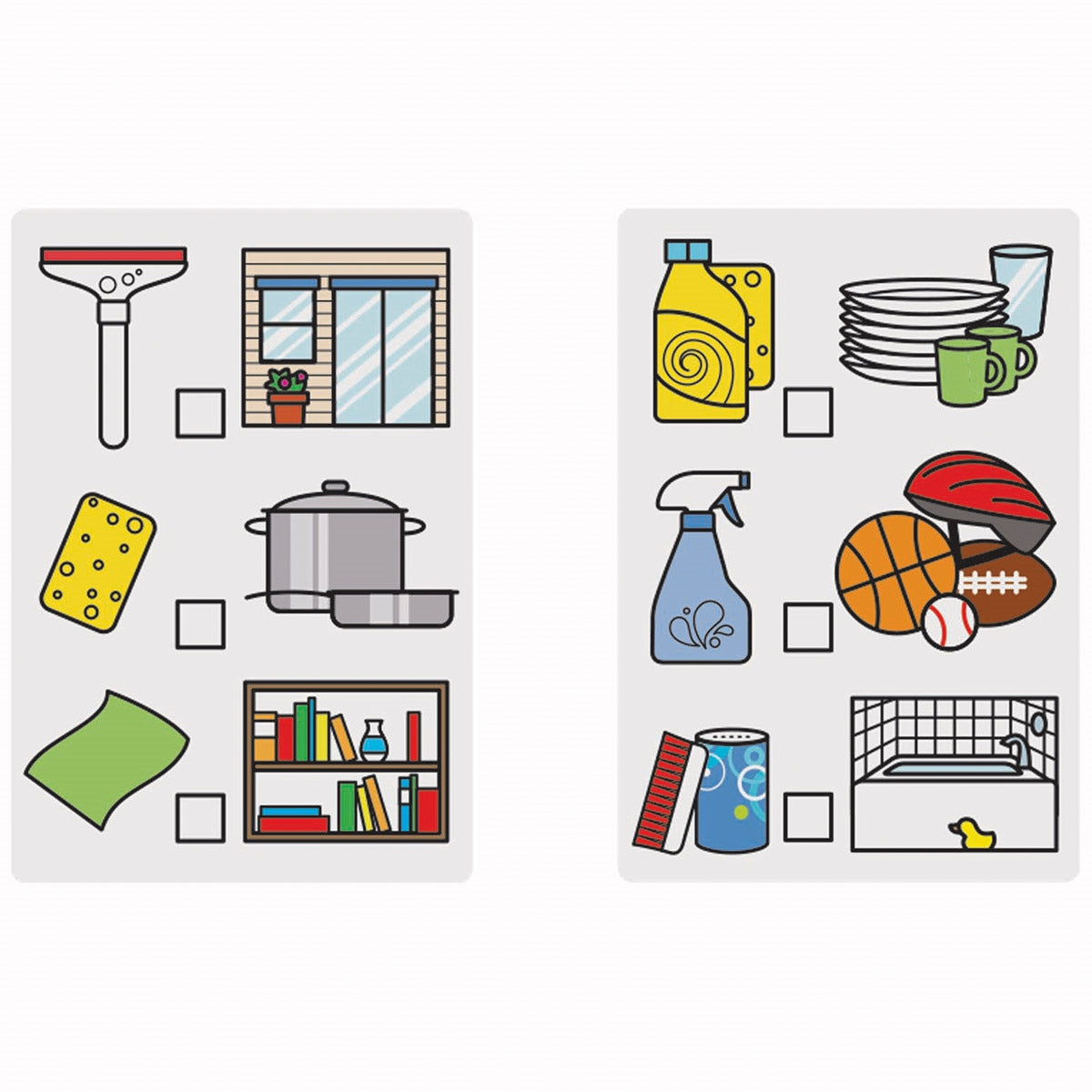 - Cleaning checklist helps kids learn what supplies work best on different household items and areas