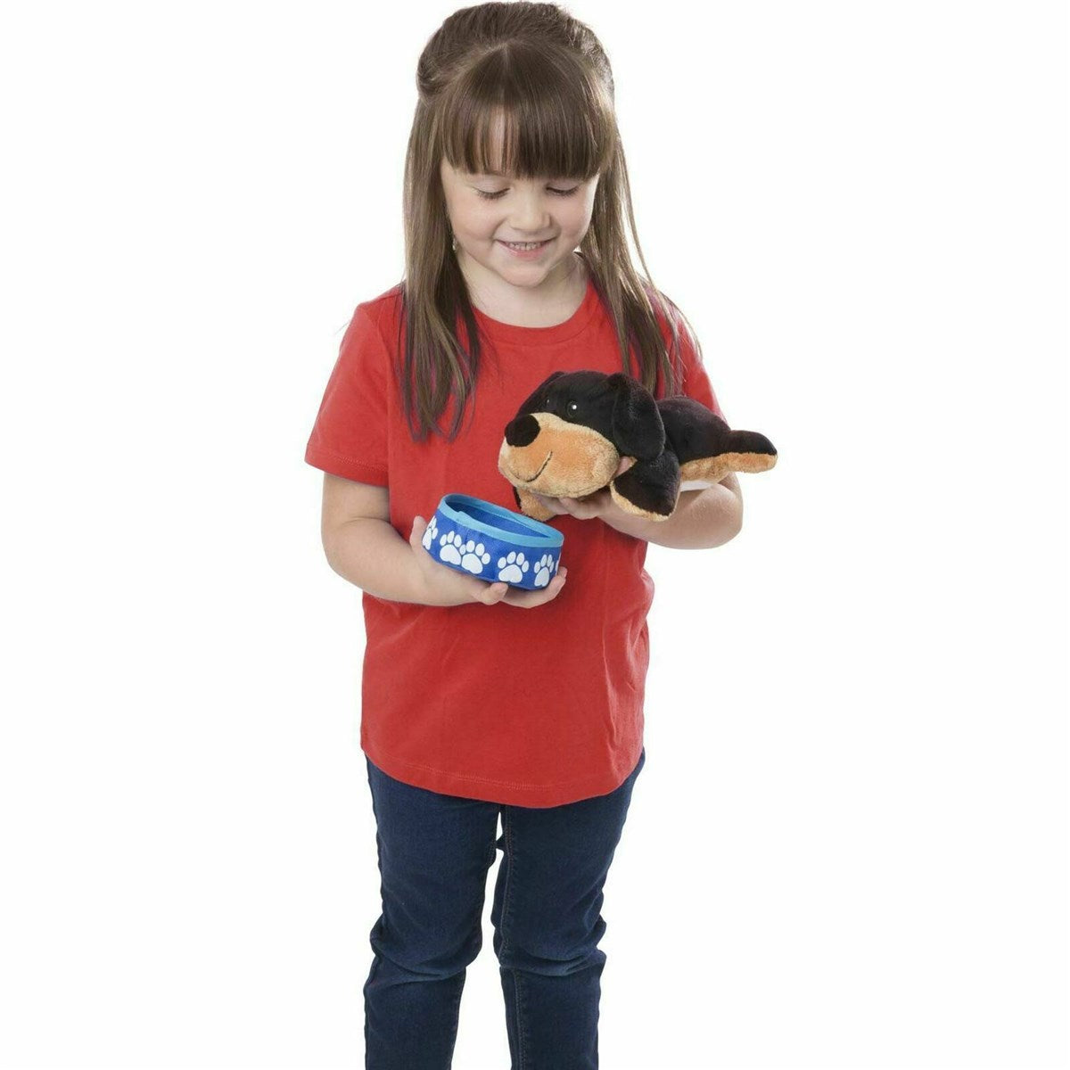 - 15-piece pretend play pet travel play set with a plush cat and dog and travel essentials