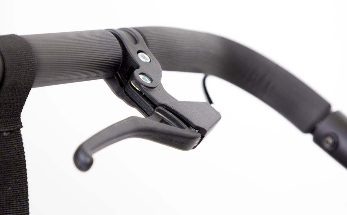 - Hand-operated control brake: Superior handling on slopes or while jogging.