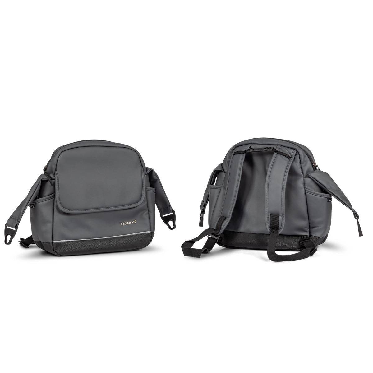 Featuring the ultra-light ThermoCot™ carrycot, a manoeuvrable chassis with an adjustable rear shock absorption system, and 2nd gen Real Gel™ wheels, the Noordi Fjordi leather version redefines smooth and stylish travel. The integrated mosquito net, open shopping bag, and other innovative features enhance its functionality, making it an excellent choice for active families who seek both luxury and practicality. Complementing this luxurious pram is a fashionable eco-leather backpack changing bag, perfectly coordinating with the pram's elegant design.