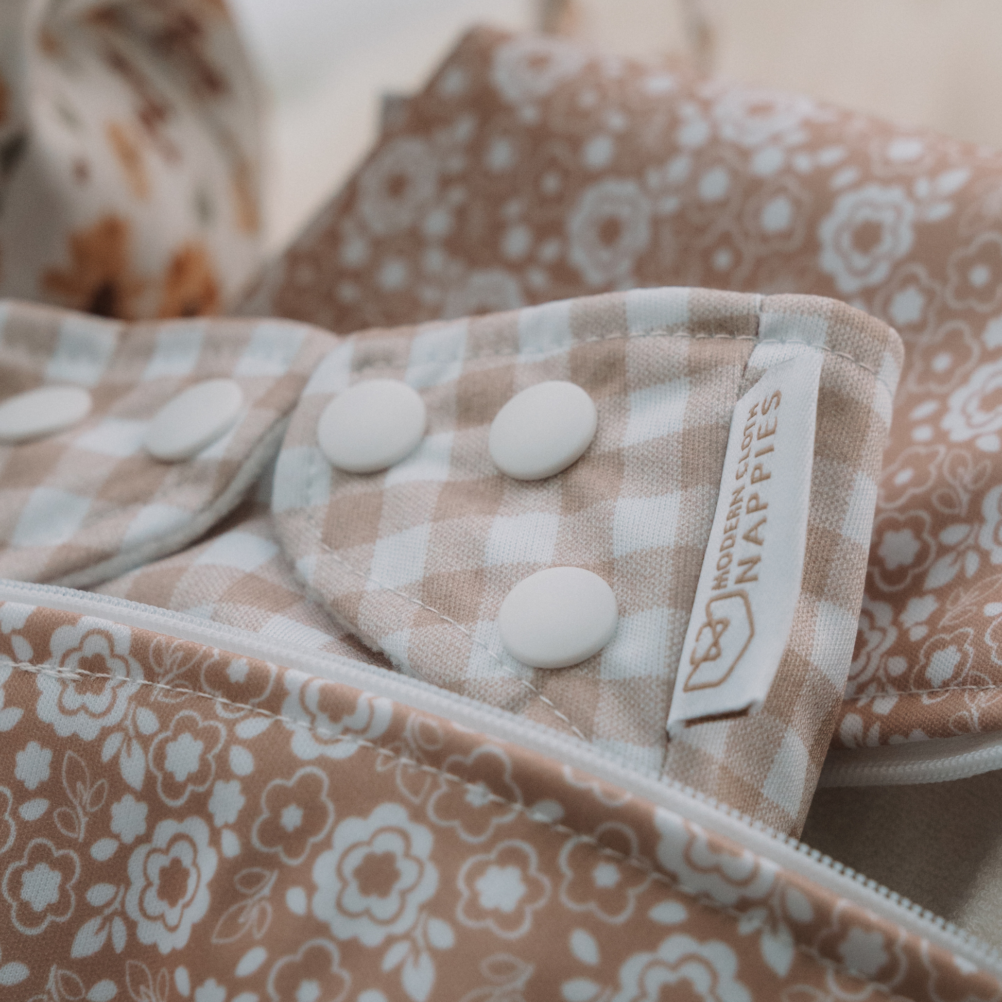 One Size All-In-One Reusable Cloth Nappy - Gingham Taupe
