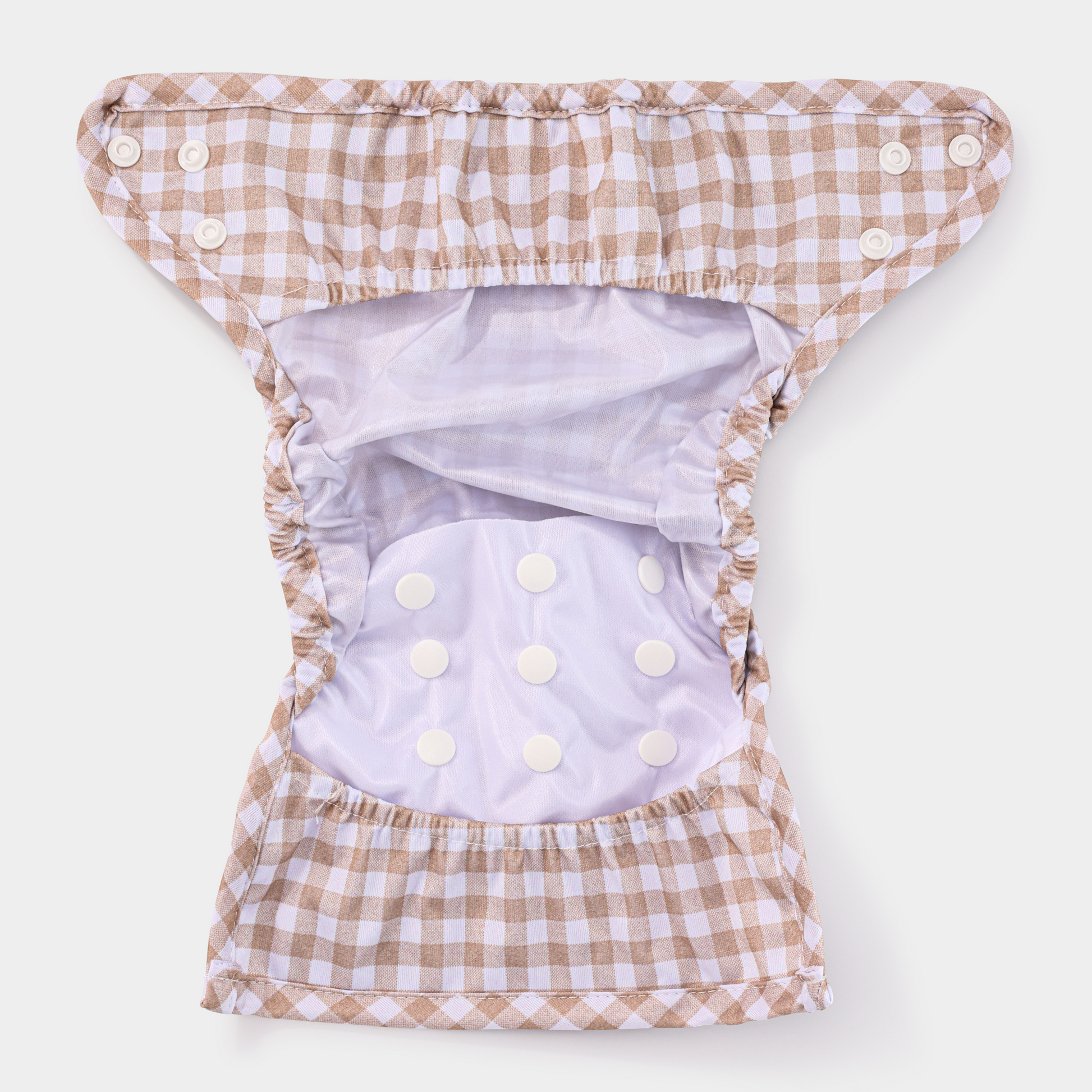 It is designed with two elasticated flaps internally, allowing you to tuck inserts and/or prefolds securely in place or it can be wrapped around fitted nappies (our bedtime nappy) as a nappy cover.