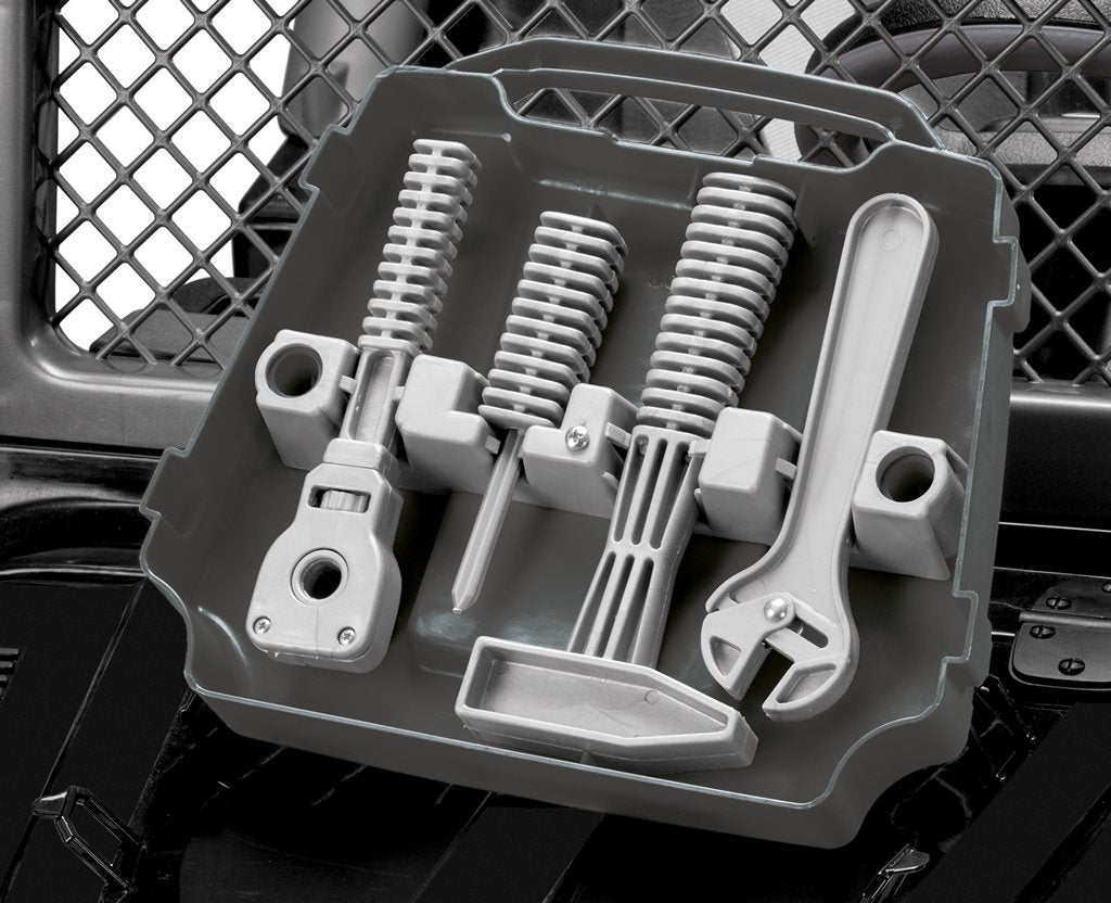 - Tool kit: Fastened on the hood, it contains everything your child needs for a great adventure without any nasty surprises! The tool kit includes toy tools: a hammer, a ratchet, a wrench and a dual screwdriver (flat blade or Phillips).