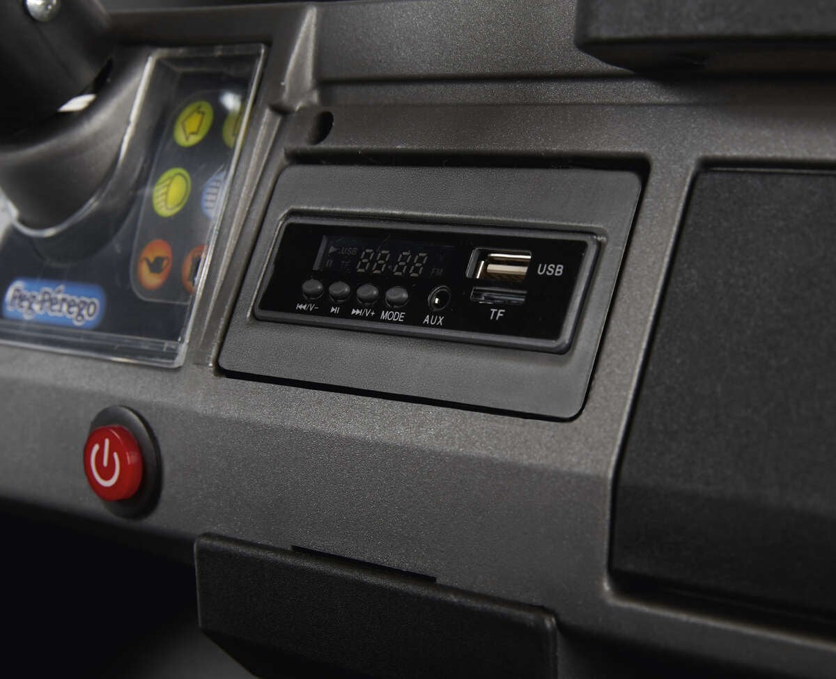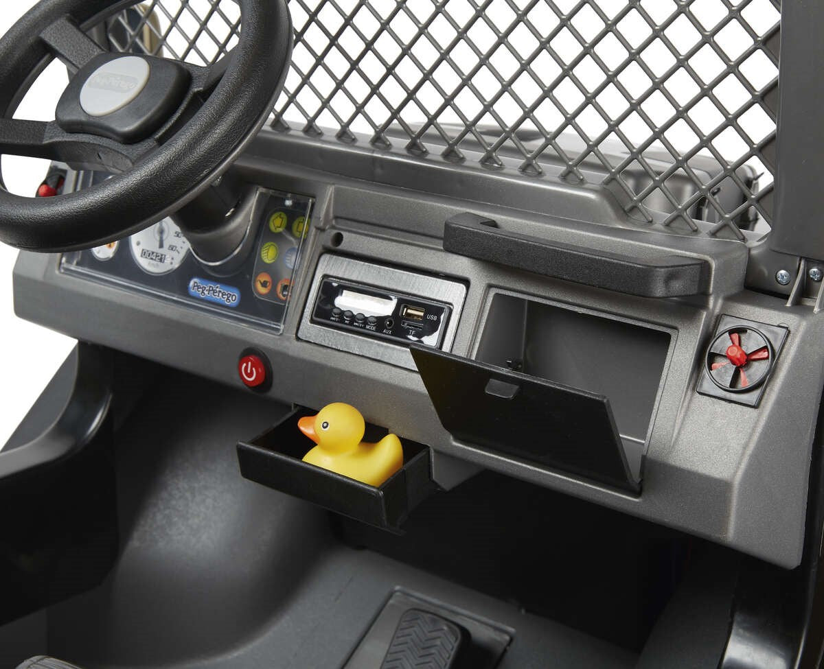 - Fully-equipped control panel, and more besides: The horn really does beep and the dashboard with glove compartments takes the game up a notch. The START button switches on the roaring engine sound and the lights. A LED light indicates how charged the battery is, so you can keep your child’s play under control.