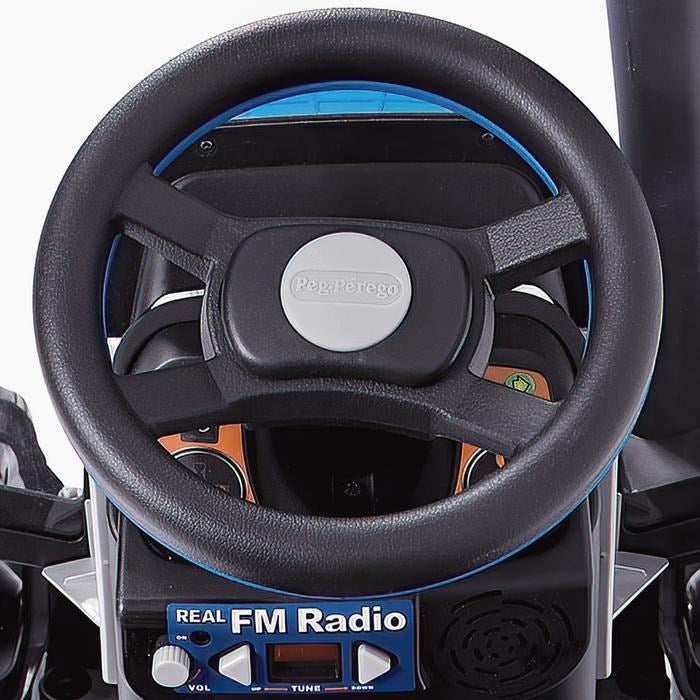 Little farmers will enjoy the signature New Holland blue of this 12-volt tractor.