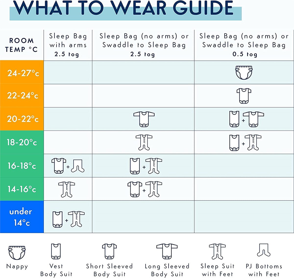 - Newborn Essentials: Access our What To Wear Guide for expert advice on baby sleepwear tailored to room temperature.