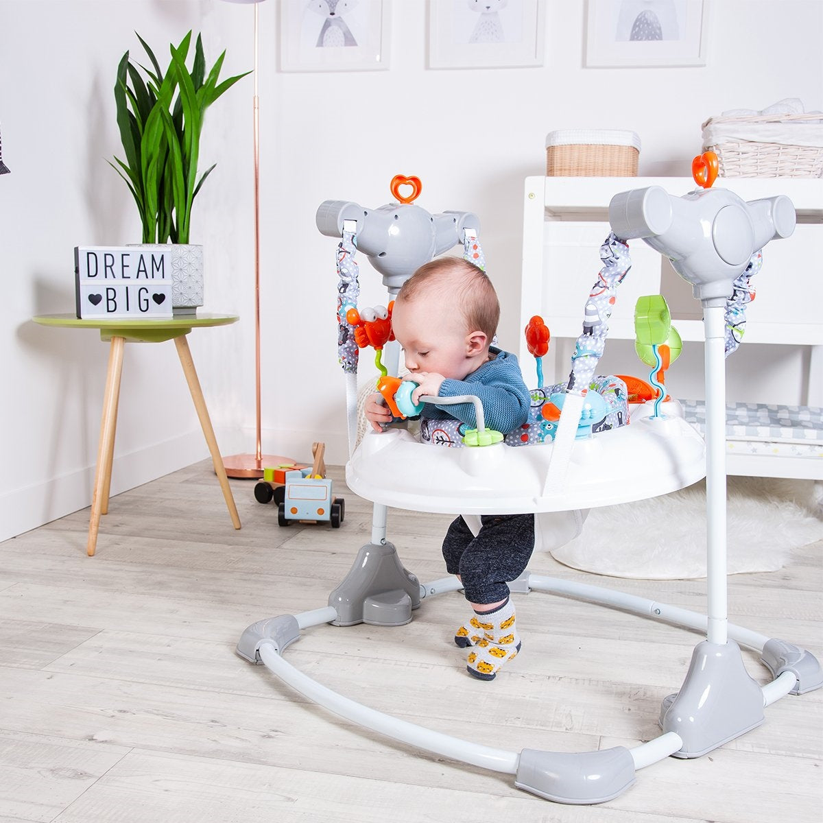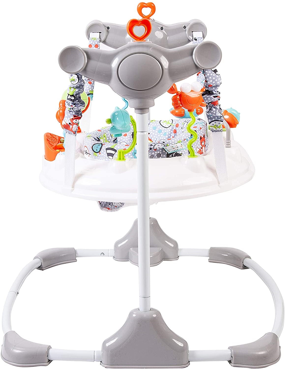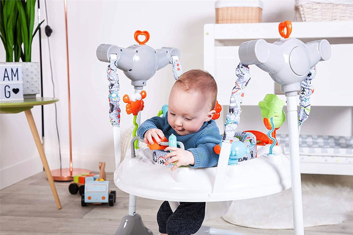 Leap into fun and development with the Red Kite Baby Go Round Jumparound, Red Kite's deluxe baby jumper designed for infants from 6 months. This multi-functional jumper station is a playground of sensory development, featuring a 360-degree rotating padded seat and a plethora of interactive toys that light up, make sounds, and play music. Adjustable to different heights, the Jumparound is built to grow alongside your baby, ensuring endless fun and learning.