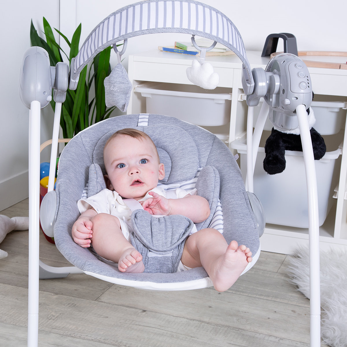 We understand the importance of providing a soft and comfortable experience for your baby. The sumptuous, padded seat with a five-point harness ensures your little one is secure and snug during playtime, swinging, or napping. The additional head hugger provides extra support for newborns, making it suitable from the earliest stages of your baby's life.