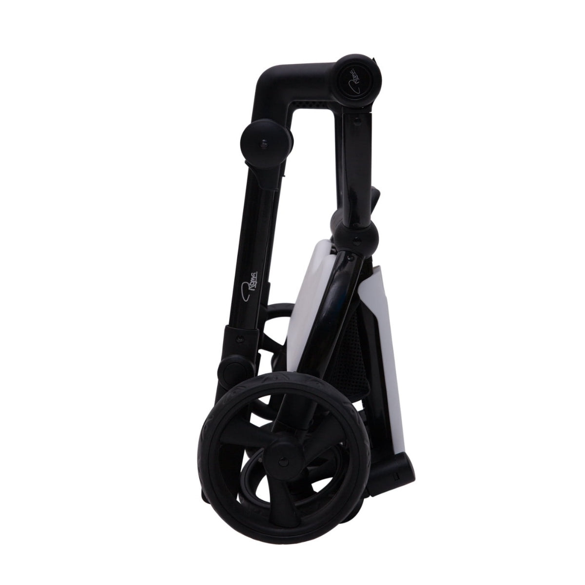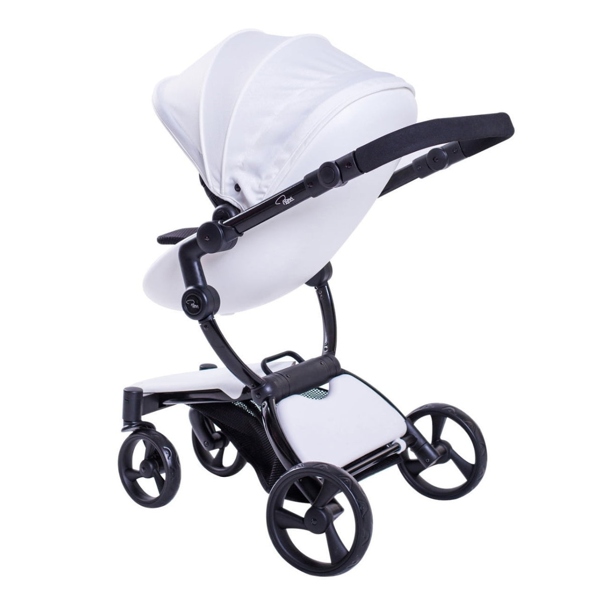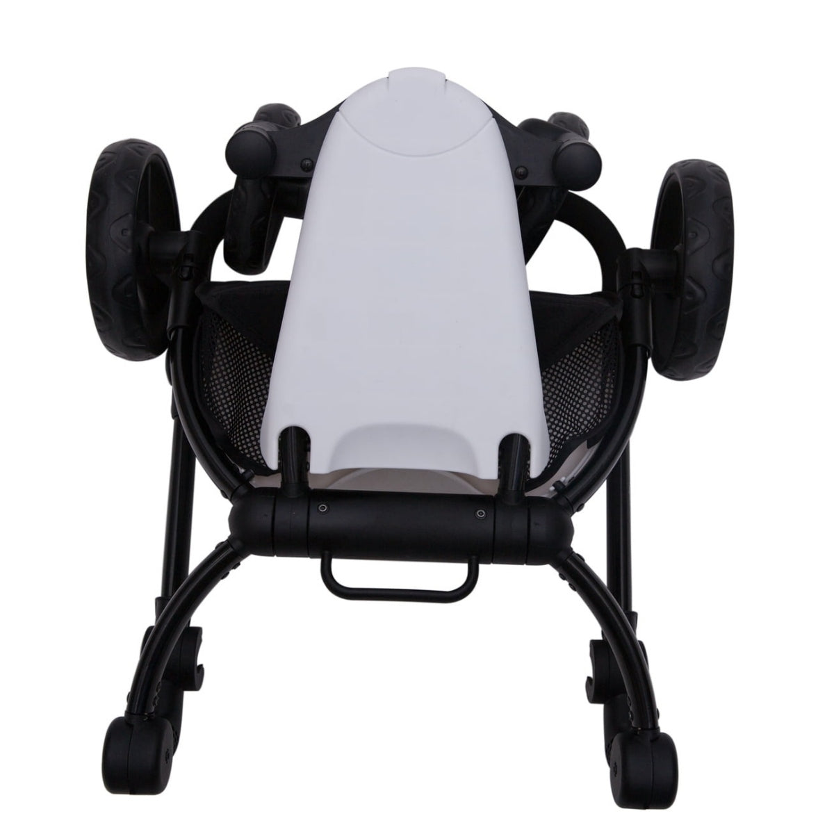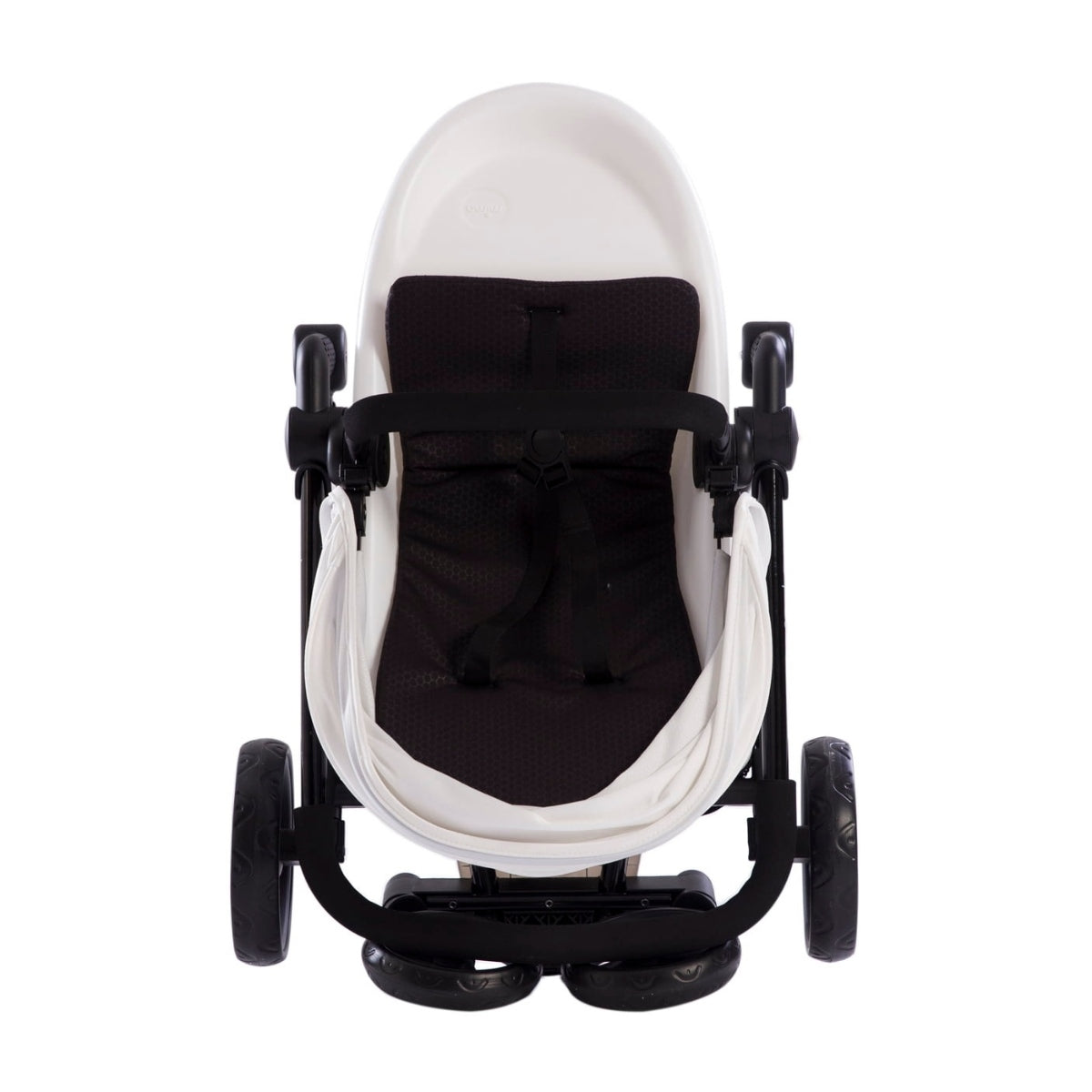 The Jemima dolls pram is a miniature version of Mum's pram! With a two-way facing seat unit, the Jemima mimics the features of a full size pram. The smooth black chassis looks stunning against the wipe-clean white fabrics.