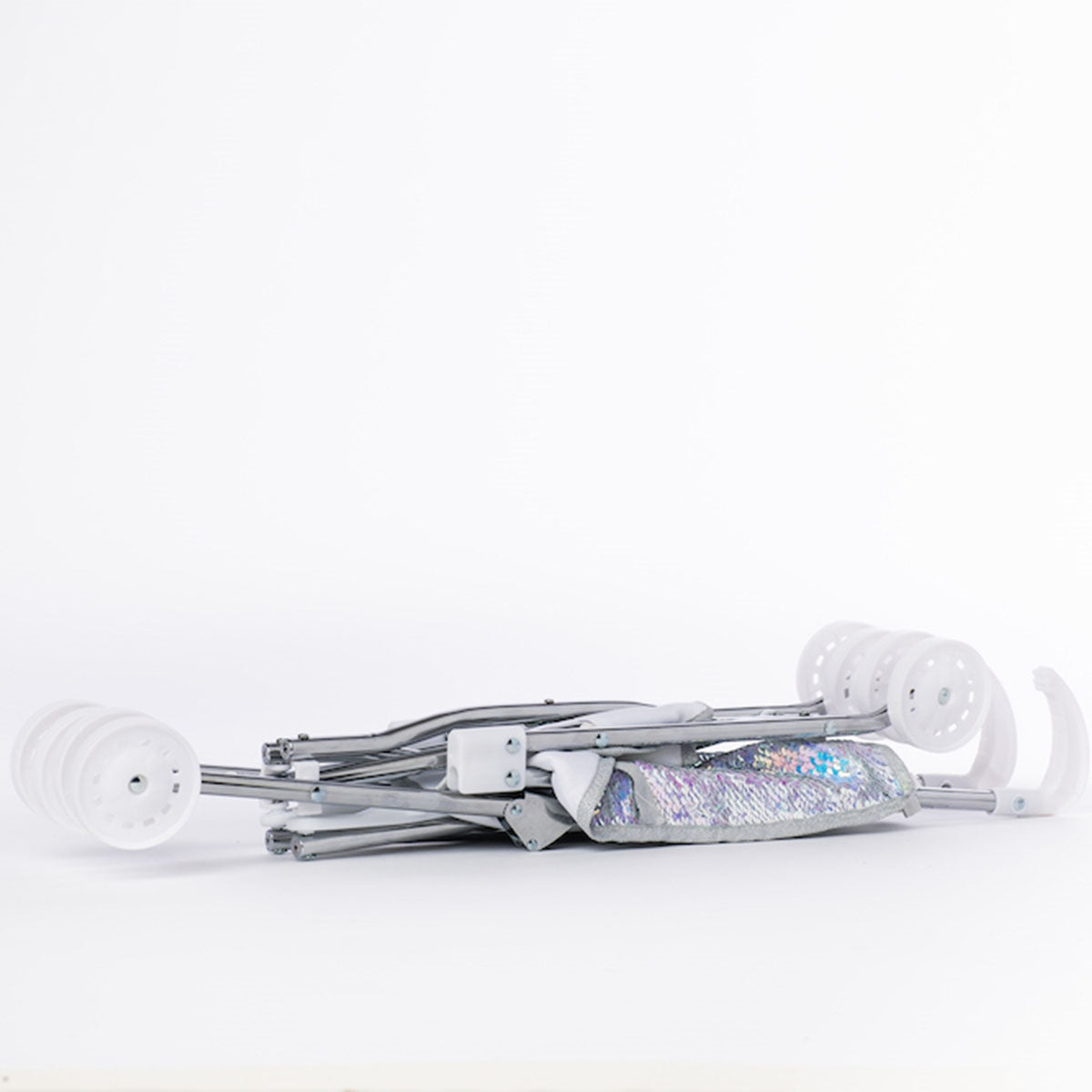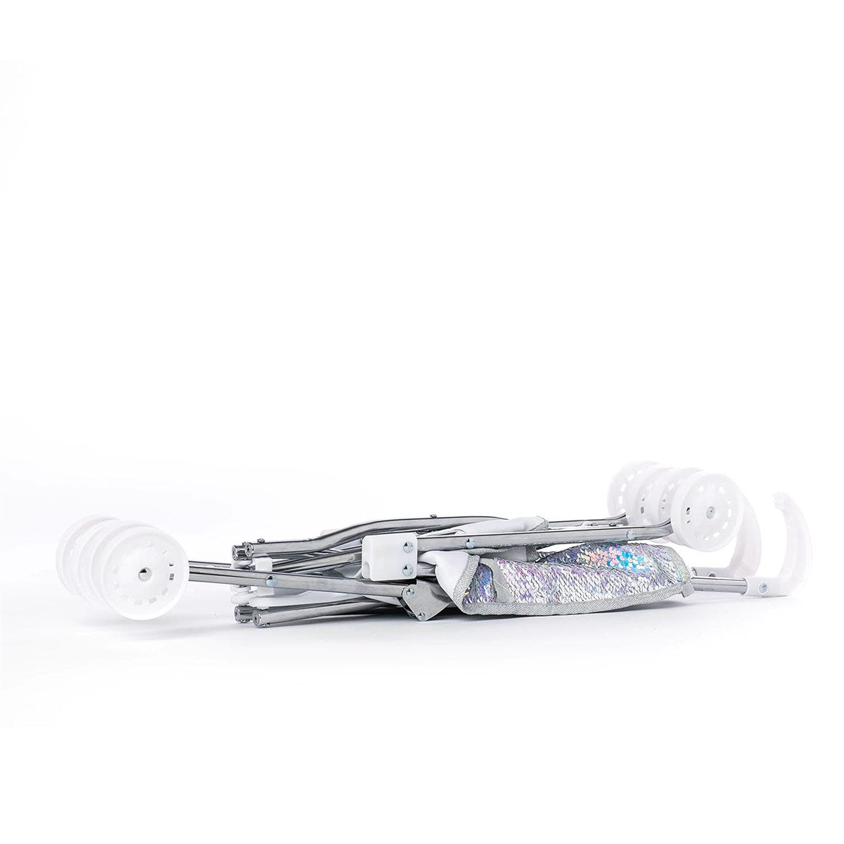 Let your child enjoy hours of imaginative fun with the Roma Polly Umbrella Buggy. The eye-catching glittering mermaid sequin fabric adds a magical flair that stands out, while its lightweight, foldable design ensures effortless use and storage. With a handle height of 55cm, it’s perfectly sized for children aged 2 and up, providing a comfortable and engaging play experience.