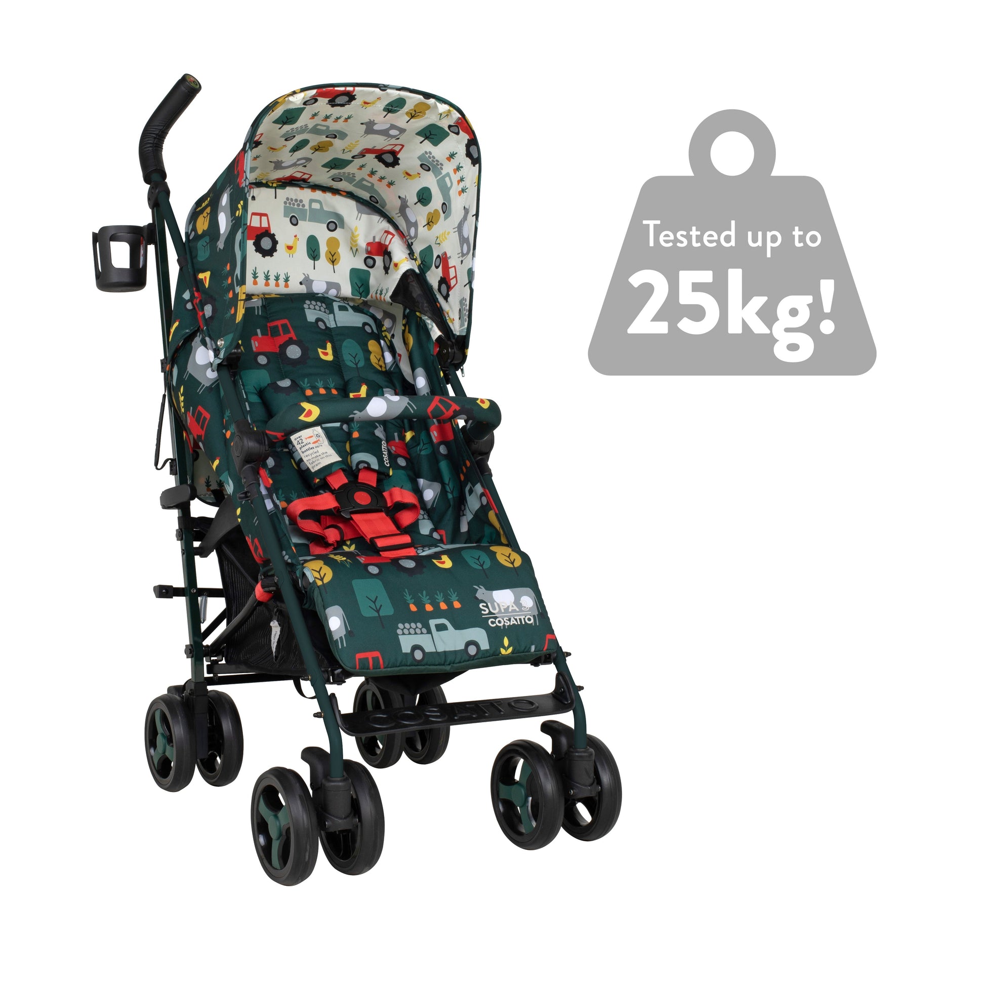 The Supa 3 in Old Macdonald is a compact stroller. Lightweight but sturdy and comes with a 4 year guarantee and free next day delivery.