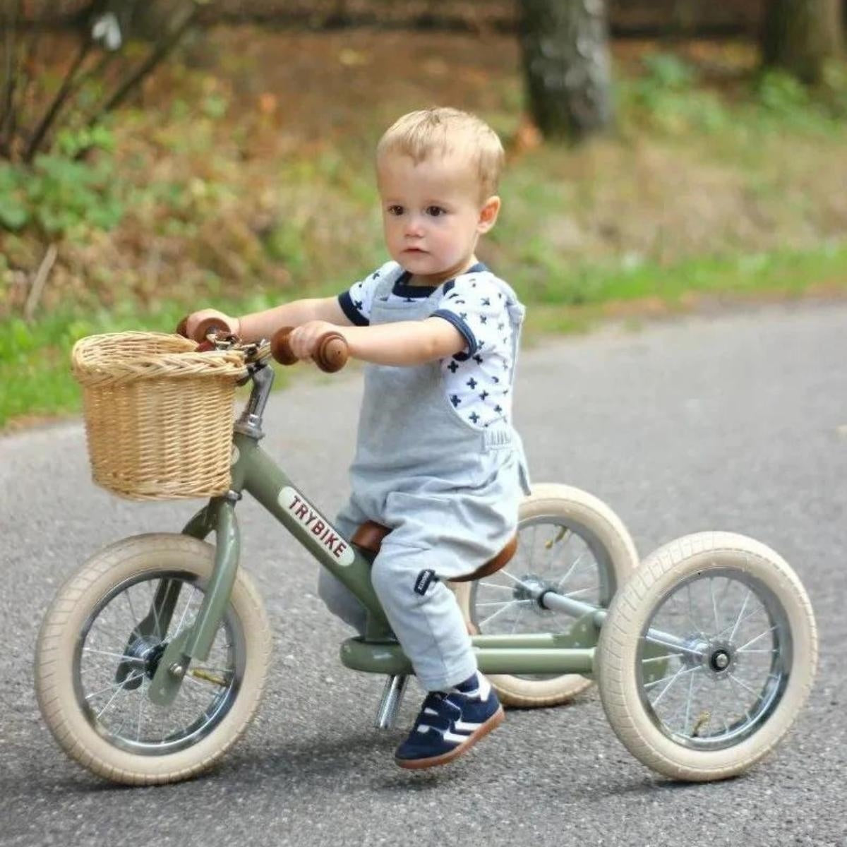 The Trybike Basket is a charming and practical addition to any Trybike. Made from durable plastic with a wicker-style design, this basket combines both aesthetics and functionality. The leather-look straps not only enhance the vintage appeal but also ensure easy and secure attachment to the handlebars. Measuring 24cm x 21cm x 15cm, this basket is spacious enough for various small items your child might want to bring along on their adventures. Please note that the Trybike wicker basket is not compatible with the Trybike 4-in-1 wood.